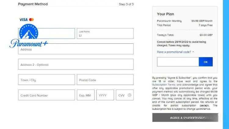 - 2. Select your paramount plus/ps4 subscription plan and fill in the relevant account information.