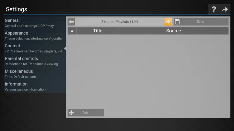 4- Then select the “Add button” and enter your playlist title and link in the required fields. (M3U playlists will be found in your subscription email.)