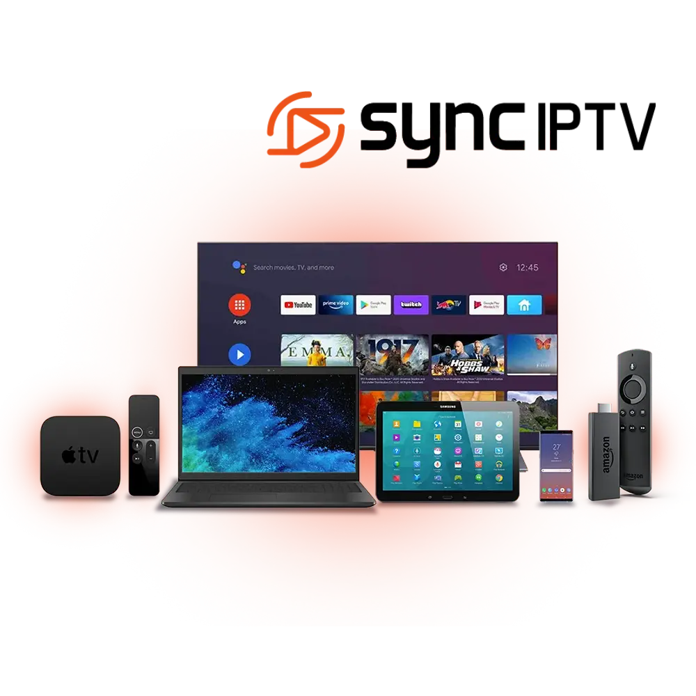 Sync IPTV is compatible with Smart TVs, Kodi, Firestick, MiTV Stick, VLC, PC, Vu+, DreamBox, Enigma, Android Boxes, and Android Smartphones.